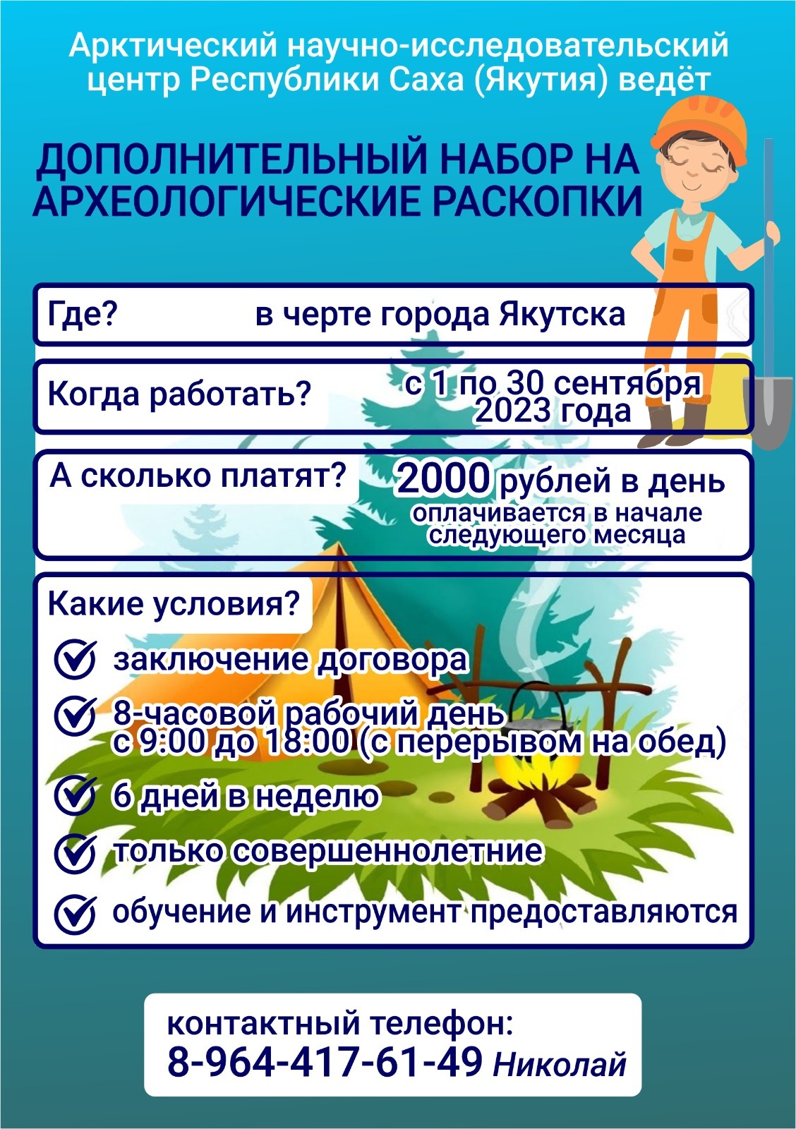 АРКТИЧЕСКИЙ НАУЧНО-ИССЛЕДОВАТЕЛЬСКИЙ ЦЕНТР РС (Я) ВЕДЕТ ДОПОЛНИТЕЛЬНЫЙ НАБОР НА АРХЕОЛОГИЧЕСКИЕ РАСКОПКИ