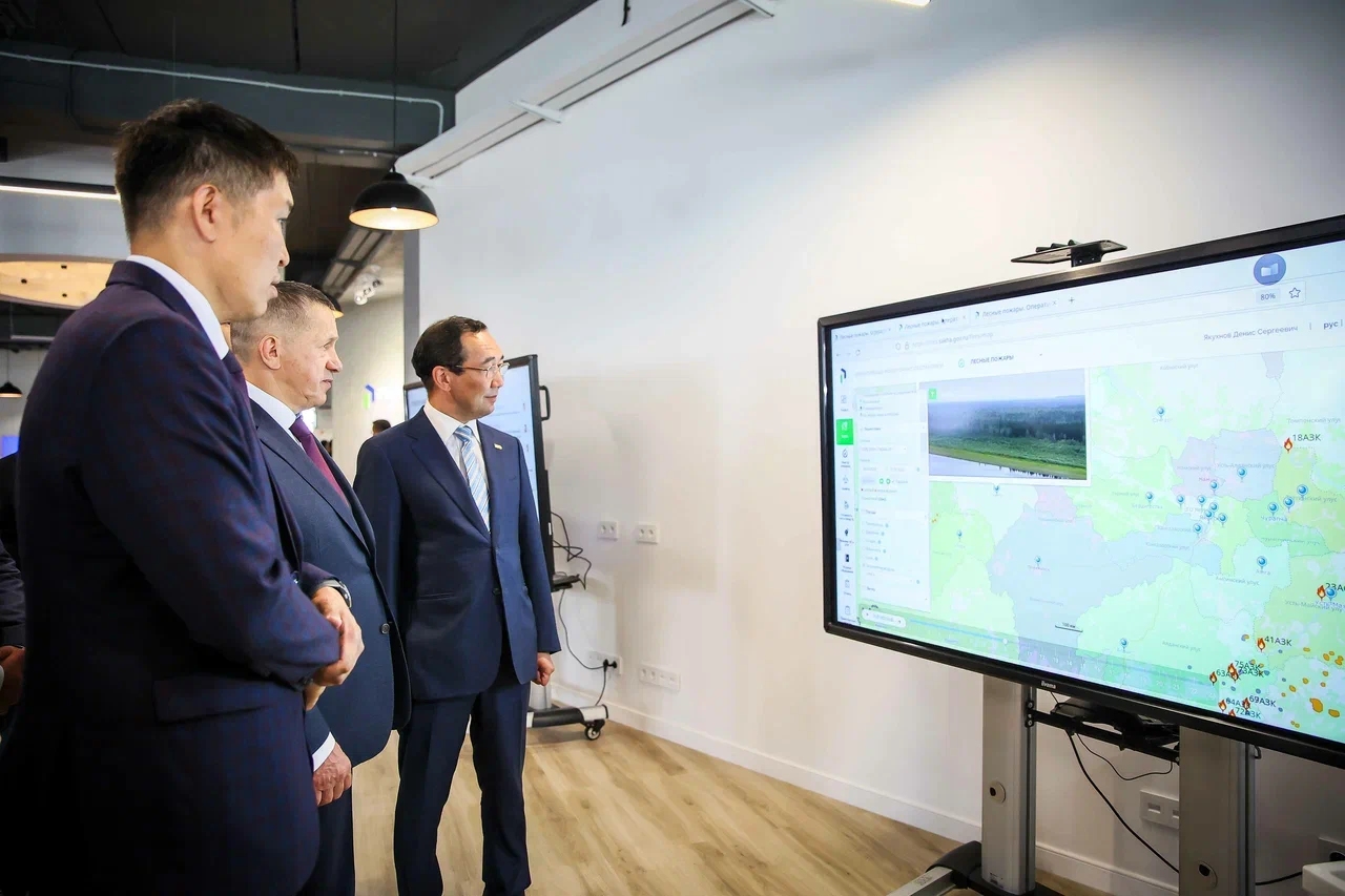 Презентация системы «Сильван» Юрию Трутневу и Айсену Николаеву — 2022 год. фото: пресс-служба Министерства инноваций, цифрового развития и инфокоммуникационных технологий Республики Саха (Якутия)