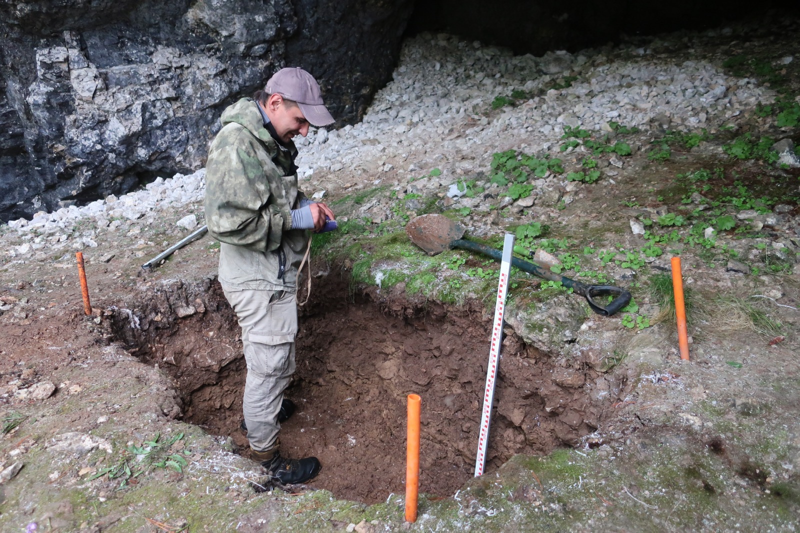 В подтверждение своей гипотезы археологи пытаются отыскать следы древних людей. Трудности поисков связаны с балластом, обваливающимся со стен и потолков пещеры. Известняк достаточно рыхлая порода и сыпется весьма активно. Пока невозможно оценить скорость накопления осадочной породы – начав рыть шурф на предпещерной площадке, специалисты уперлись в вечную мерзлоту на глубине около метра, а продвинуться дальше помешала нехватка времени.
