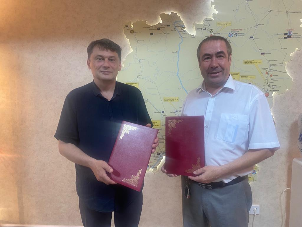 Подписание соглашения о сотрудничестве. Справа – директор АНИЦ АН РС (Я) Юрий Шипицын, слева – начальник отдела археологии ООО «ГеоКорд» Игорь Макаров.