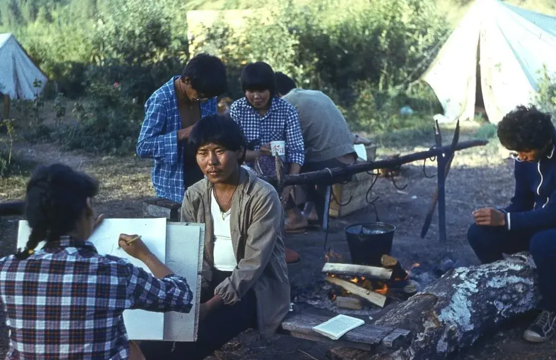 Колодезников С.К. позирует художнице Ирине Мекумяновой. Экспедиционное фото в студенческие годы