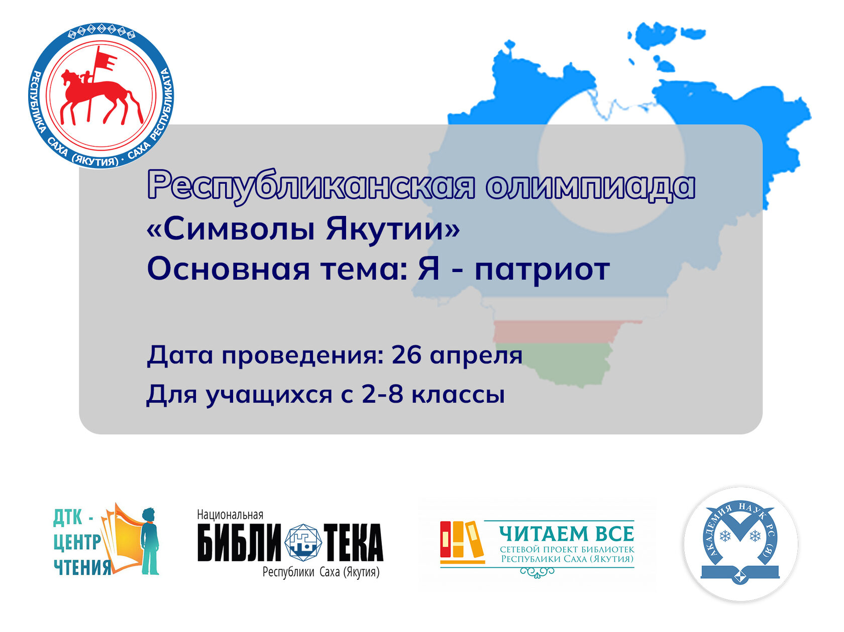 26 апреля состоялась VII республиканская олимпиада «Символы Якутии. Я – патриот» организованная филиалом Национальной библиотеки Якутии «ДТК – центр чтения».